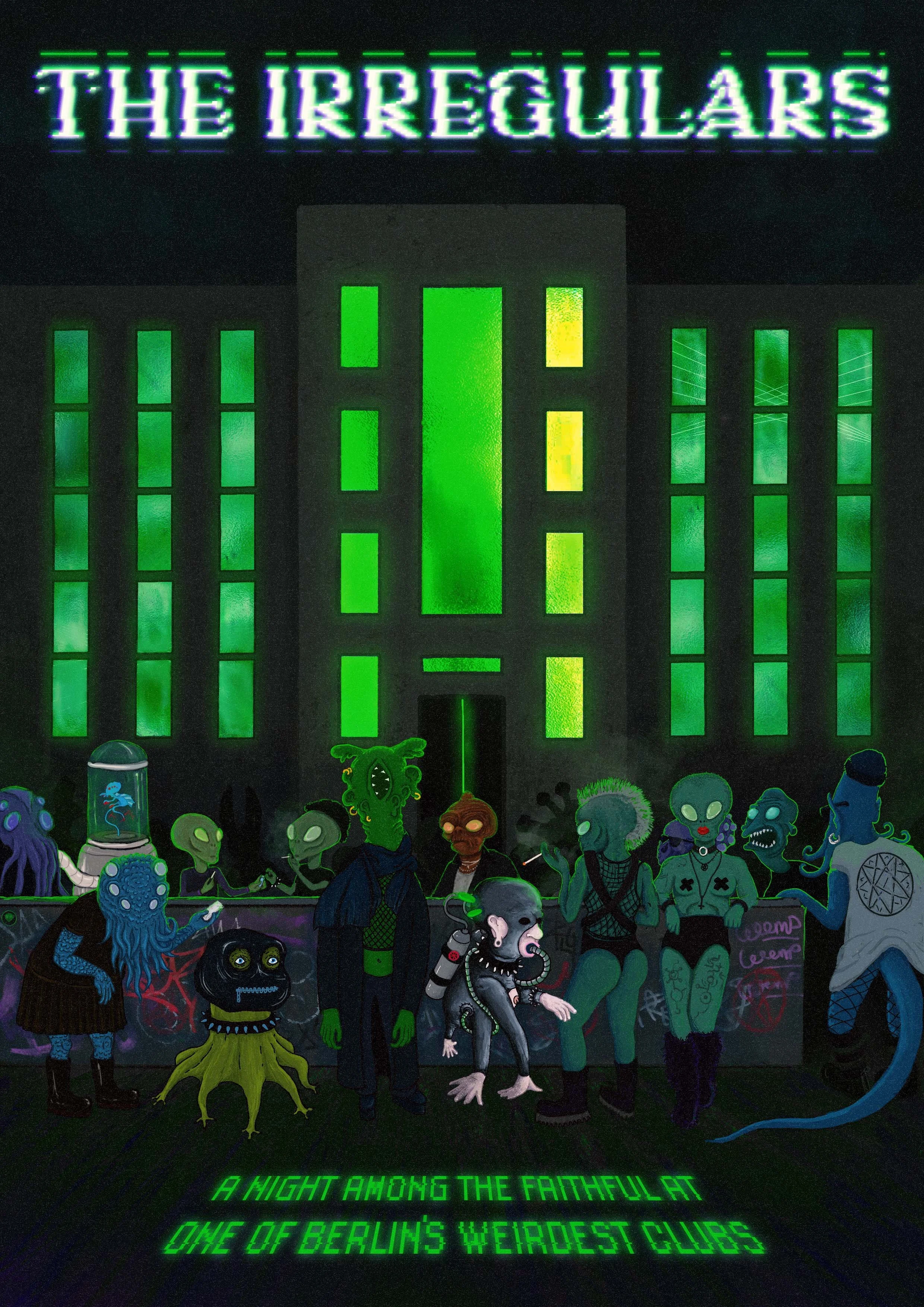 The Irregulars explores Berlin's nightlife subculture through narrative illustration, capturing the eccentricity and diversity of the city's underground music and club scene. This piece was created as a concept editorial illustration, giving me an avenue to explore a more expressive and characterful narrative style outside commissioned work.